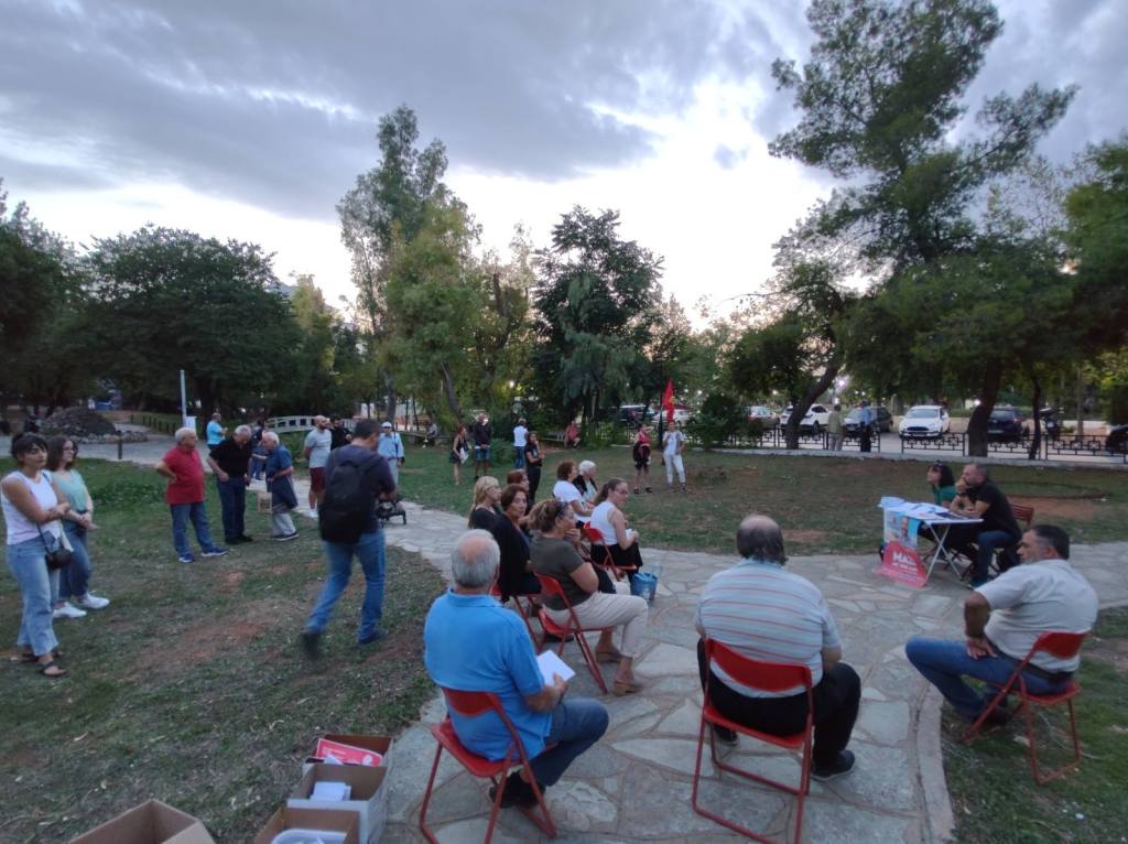 Την Τετάρτη πραγματοποιήθηκε συζήτηση με κατοίκους της περιοχής στο Πάρκο Γουδή, μπροστά από το κέντρο «Ρυθμός» με ομιλητή τον υποψήφιο δήμαρχο Ζωγράφου με τη «Λαϊκή Συσπείρωση», Ανδρέα Καραβίδα.