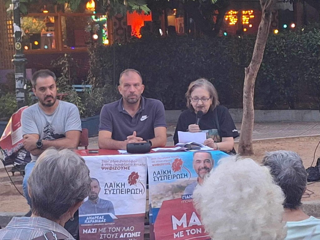 Κλείνοντας, τόνισε πως όσο πιο ψηλά φτάσει η «Λαϊκή Συσπείρωση», τόσο πιο μπροστά θα βγουν οι λαϊκές ανάγκες, και απεύθυνε πρόσκληση για αγωνιστική συμμετοχή στην κεντρική προεκλογική συγκέντρωση της «Λαϊκής Συσπείρωσης Ζωγράφου», που θα γίνει στις 5 Οκτωβρίου στην πλατεία Τερζάκη.