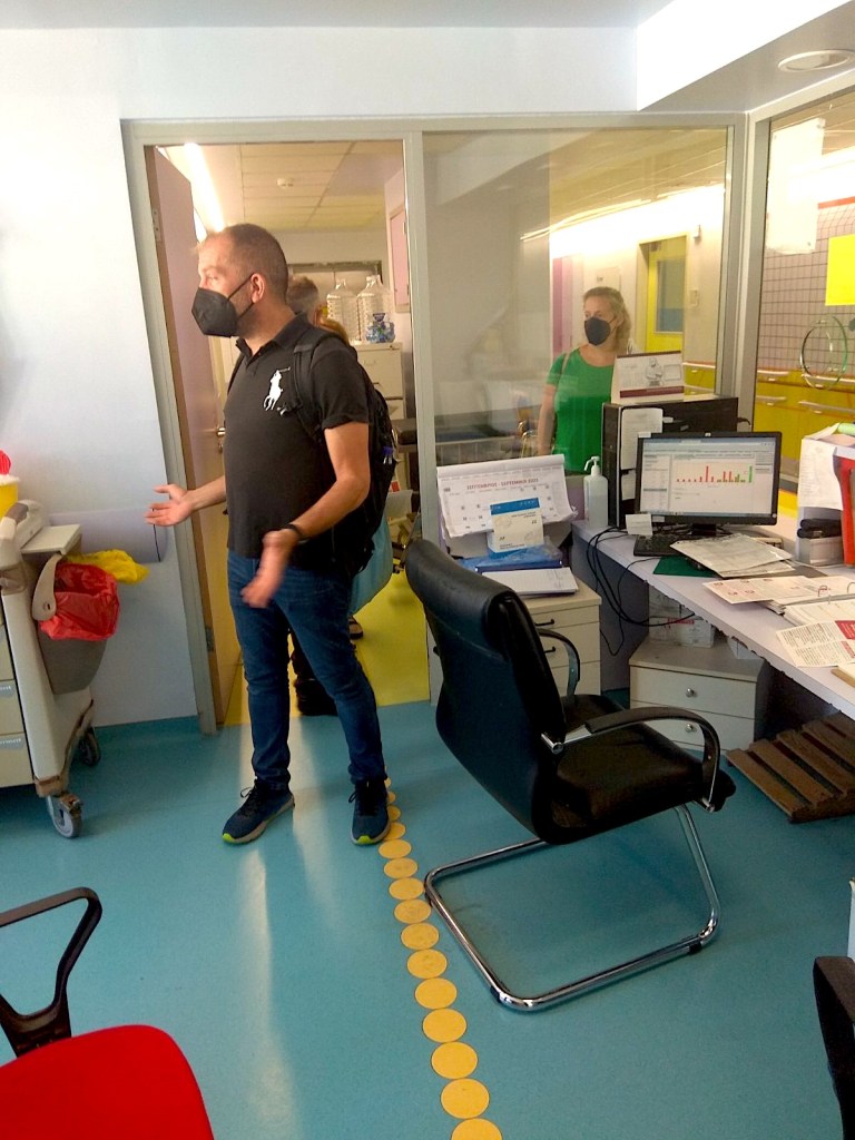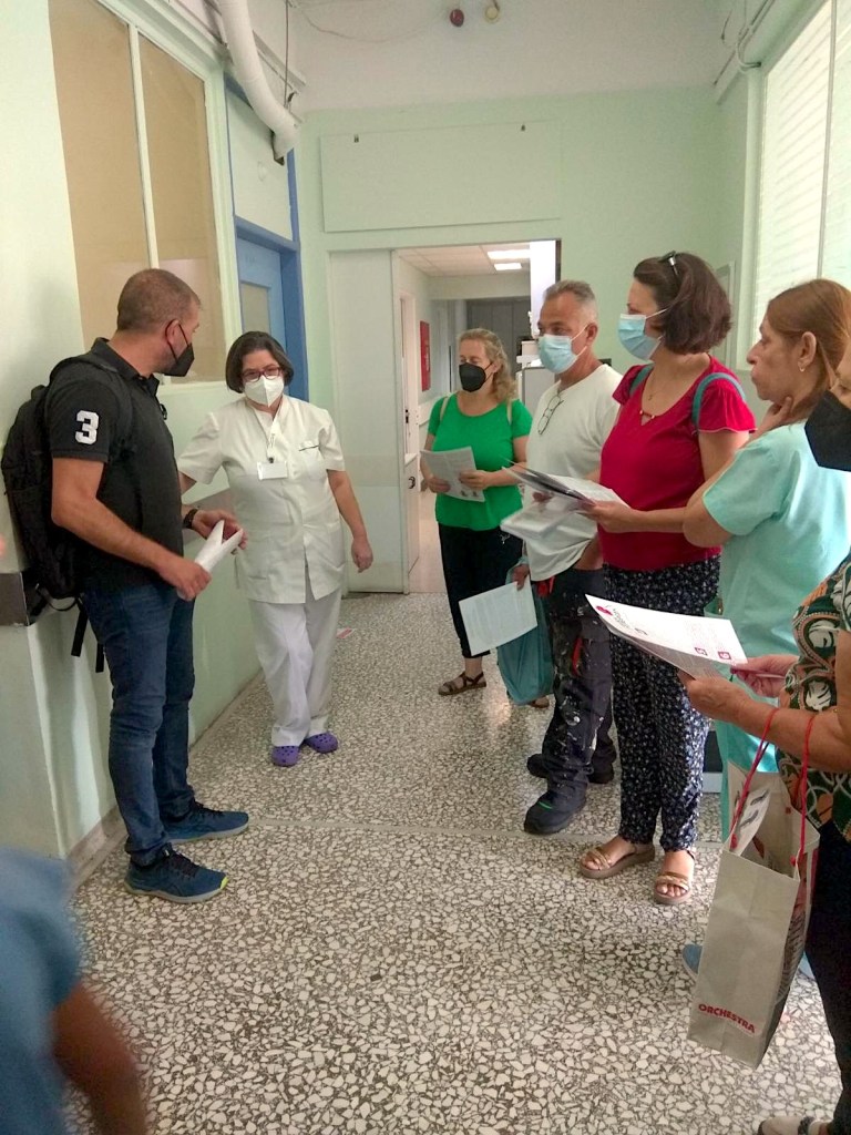 Οι υποψήφιοι της Λαϊκής Συσπείρωσης ενημερώθηκαν για τα προβλήματα που αντιμετωπίζουν οι εργαζόμενοι του νοσοκομείου, όπως ο κίνδυνος να κλείσει το Τμήμα Ανοσολογίας-Ιστοσυμβατότητας, λόγω υποστελέχωσης. Συζήτησαν για την επιλεκτική απραξία του κράτους που χρηματοδοτεί εργολάβους και μεγαλοεπιχειρηματίες, την αποστολή πολεμικού υλικού στο εξωτερικό κ.λπ., την ίδια στιγμή που αφήνει τα νοσοκομεία και τις δομές υγείας αποψιλωμένες από γιατρούς και νοσηλευτές, χωρίς τον αναγκαίο εξοπλισμό. Είναι χαρακτηριστική η κατάσταση σε τμήματα των μεγαλύτερων νοσοκομείων της χώρας, που βρίσκονται στην πρώτη γραμμή υπεράσπισης της ζωής του λαού π.χ. η Μονάδα Μεσογειακής Αναιμίας και το Τμήμα Αιμοδοσίας του Νοσοκομείου. Απασχόλησαν επίσης οι συνθήκες εντατικοποίησης και ελαστικών μορφών εργασίας μέσα στις οποίες δουλεύουν δεκάδες εργαζόμενοι όλων των ειδικοτήτων.