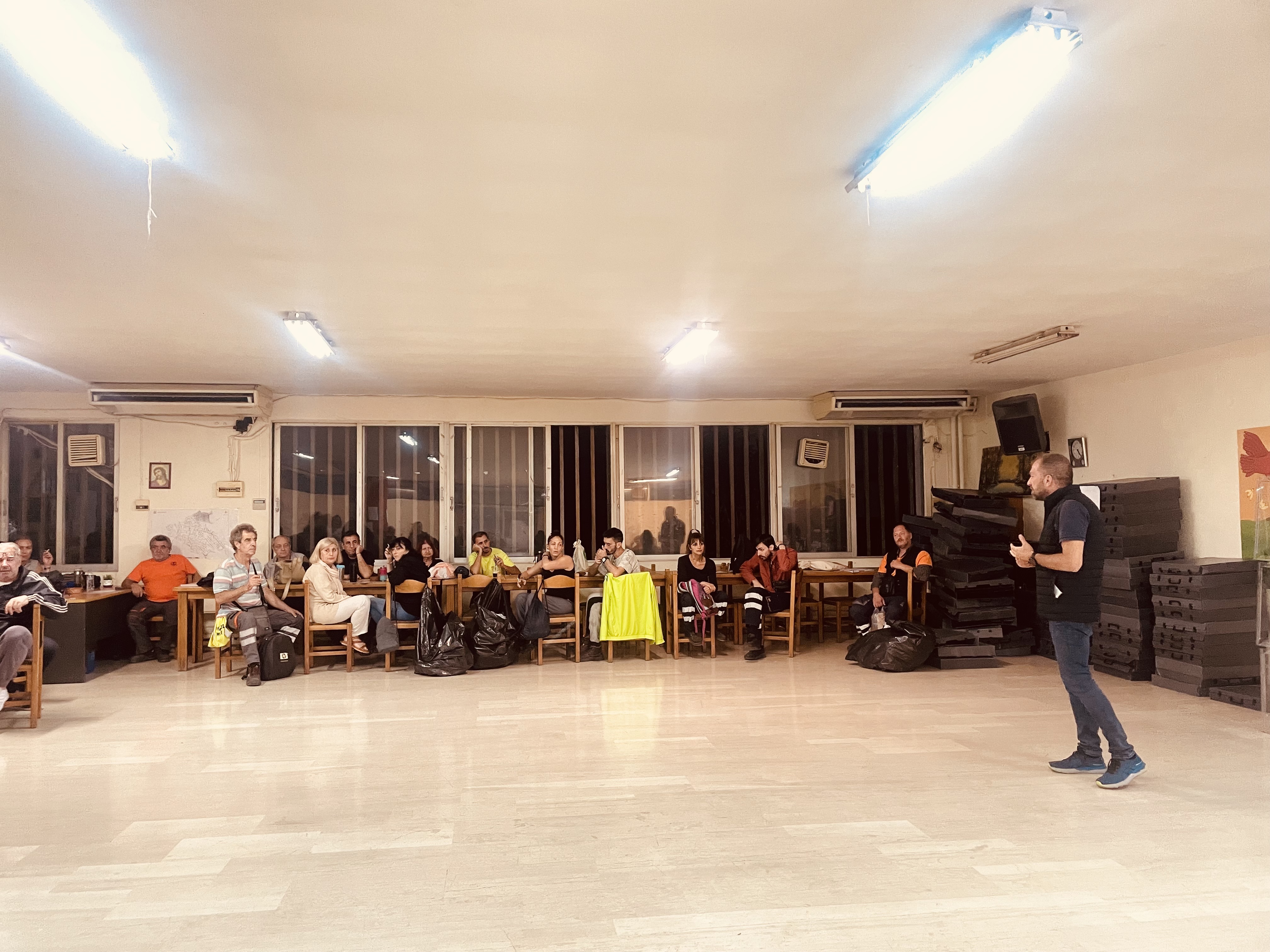 Αναφορικά με τα απορρίμματα, συζητήθηκε το γεγονός πως η διοίκηση του δήμου έφερε κάδους για τα βιοαπόβλητα, αλλά την ίδια στιγμή ζητά από την κεντρική διοίκηση μόνο 10 μόνιμους και 15 συμβασιούχους 8μηνίτες εργαζόμενους. Ο Ανδρέας Καραβίδας ενημέρωσε τους εργαζόμενους πως μόνο η Λαϊκή Συσπείρωση καταψήφισε το συγκεκριμένο σχεδιασμό, όπως είχε κάνει και με το οργανόγραμμα και τις προσωποπαγείς θέσεις. Είναι καθαρό πως οι εξελίξεις αυτές σημαίνουν τριπλάσιο όγκο δουλειάς για τους εργάτες του δήμου, χωρίς ουσιαστική ενίσχυση σε προσωπικό.