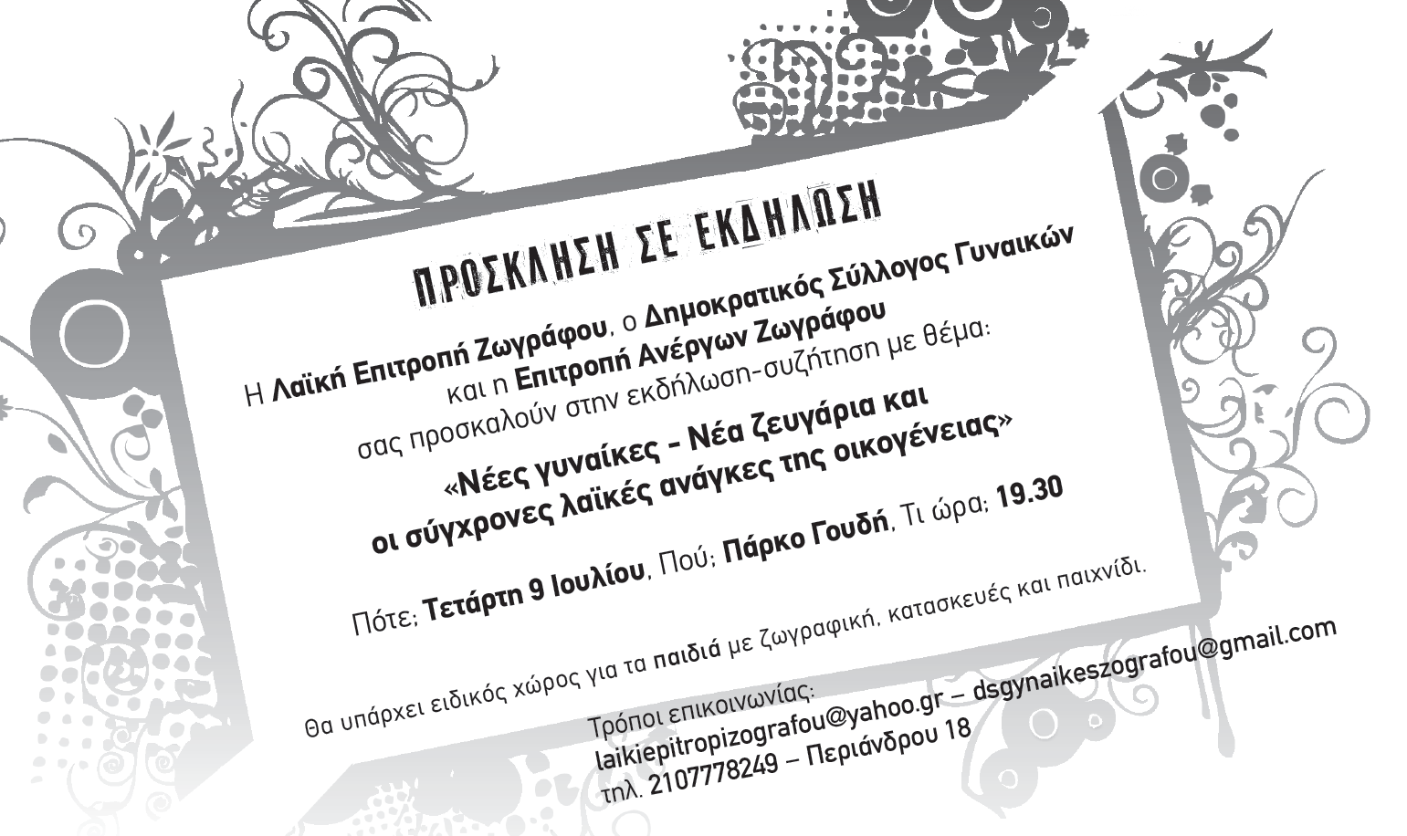 Η Λαϊκή Επιτροπή Ζωγράφου, ο Δημοκρατικός Σύλλογος Γυναικών και η Επιτροπή Ανέργων Ζωγράφου σας προσκαλούν στην εκδήλωση-συζήτηση με θέμα: