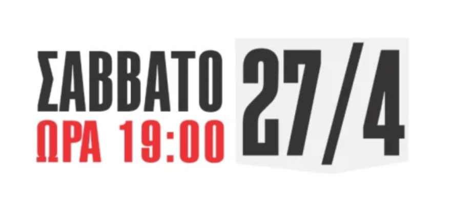 το Σάββατο 27/4 στις 19:00 στην πλατεία Μάχης της Κρήτης (πρώην Καγγέλη).