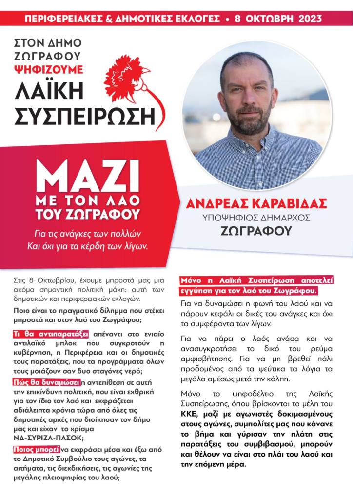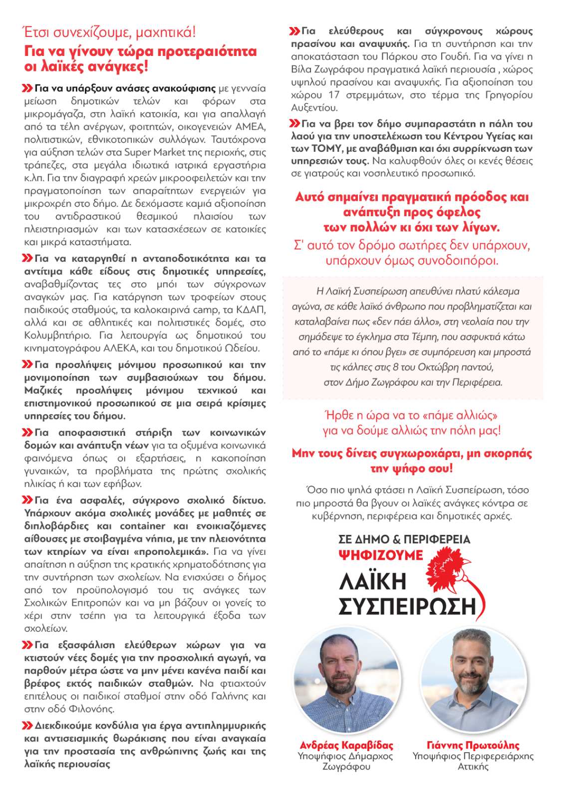 Μόνο η Λαϊκή Συσπείρωση αποτελεί εγγύηση για τον λαό του Ζωγράφου.