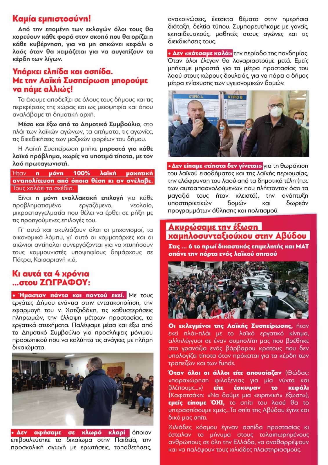 Η Λαϊκή Συσπείρωση μπήκε μπροστά για κάθε λαϊκό πρόβλημα, χωρίς να υποτιμά τίποτα, με τον λαό πρωταγωνιστή.