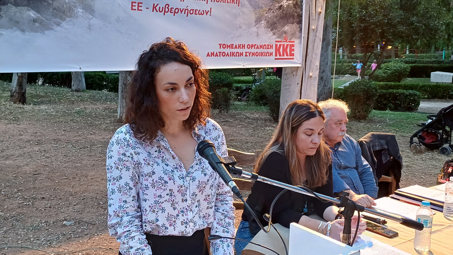 Στην ομιλία της η Νίκη Χρονοπούλου, υποψήφια Ευρωβουλευτής του ΚΚΕ, τόνισε ότι η γνωστή λογική «κόστους – οφέλους» στην οποία συνεχώς σκοντάφτουμε, φαίνεται και στον τομέα της προστασίας του περιβάλλοντος. «Έτσι και σε επίπεδο Ευρωπαϊκής Ένωσης είναι στρατηγική επιλογή η αποζημίωση των καμένων ή των πλημμυρών από την ολοκληρωμένη πρόληψη και τα μέτρα για την πυροπροστασία, αν είναι φθηνότερη για το κράτος. Λένε δηλαδή ωμά στον λαό: Να καείς, να πνιγείς, να καταστραφείς!».