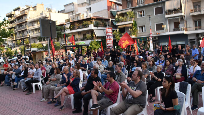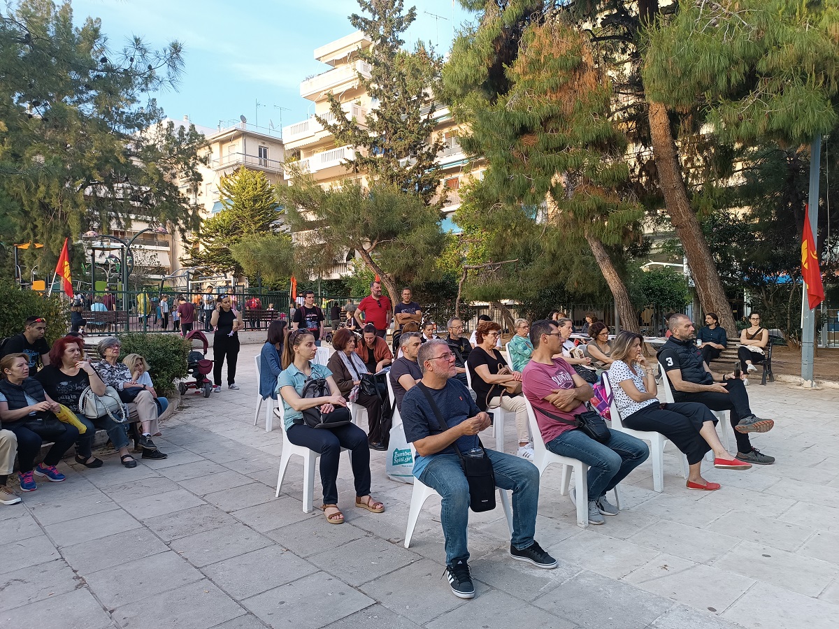 Συγκέντρωση στην πλατεία Τερζάκη, στα Ιλίσια, πραγματοποιήθηκε την Τετάρτη 29 Μάη, με ομιλητές τους υποψήφιους ευρωβουλευτές του ΚΚΕ Ιωάννα Κολοβού και Θοδωρή Κωτσαντή.